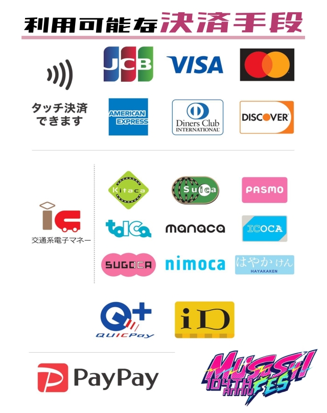 - 本記念祭では現金での決済は受け付けておらず、キャッシュレス決済のみとなっております。