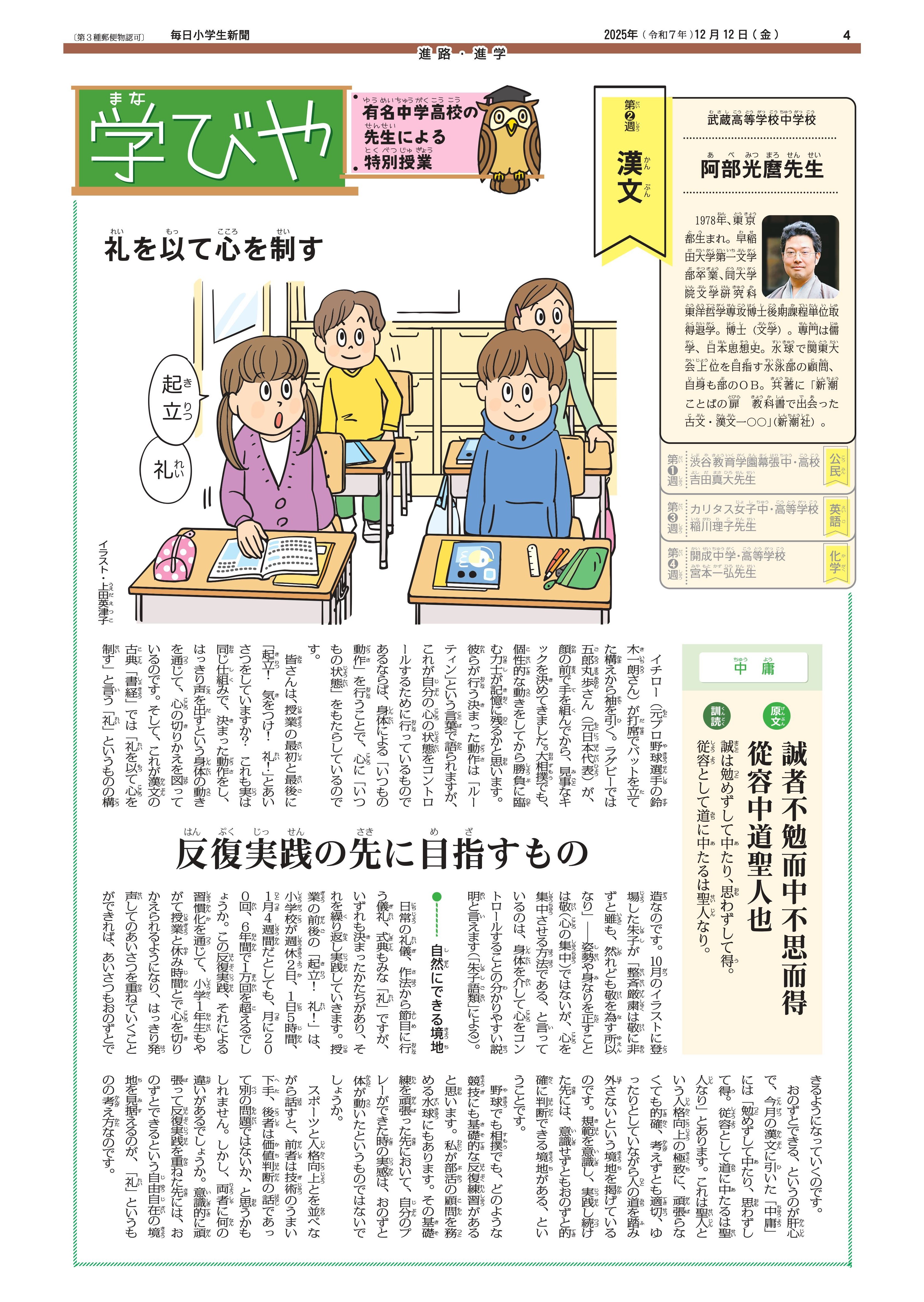 毎日小学生新聞で阿部光麿 教諭の連載が始まりました