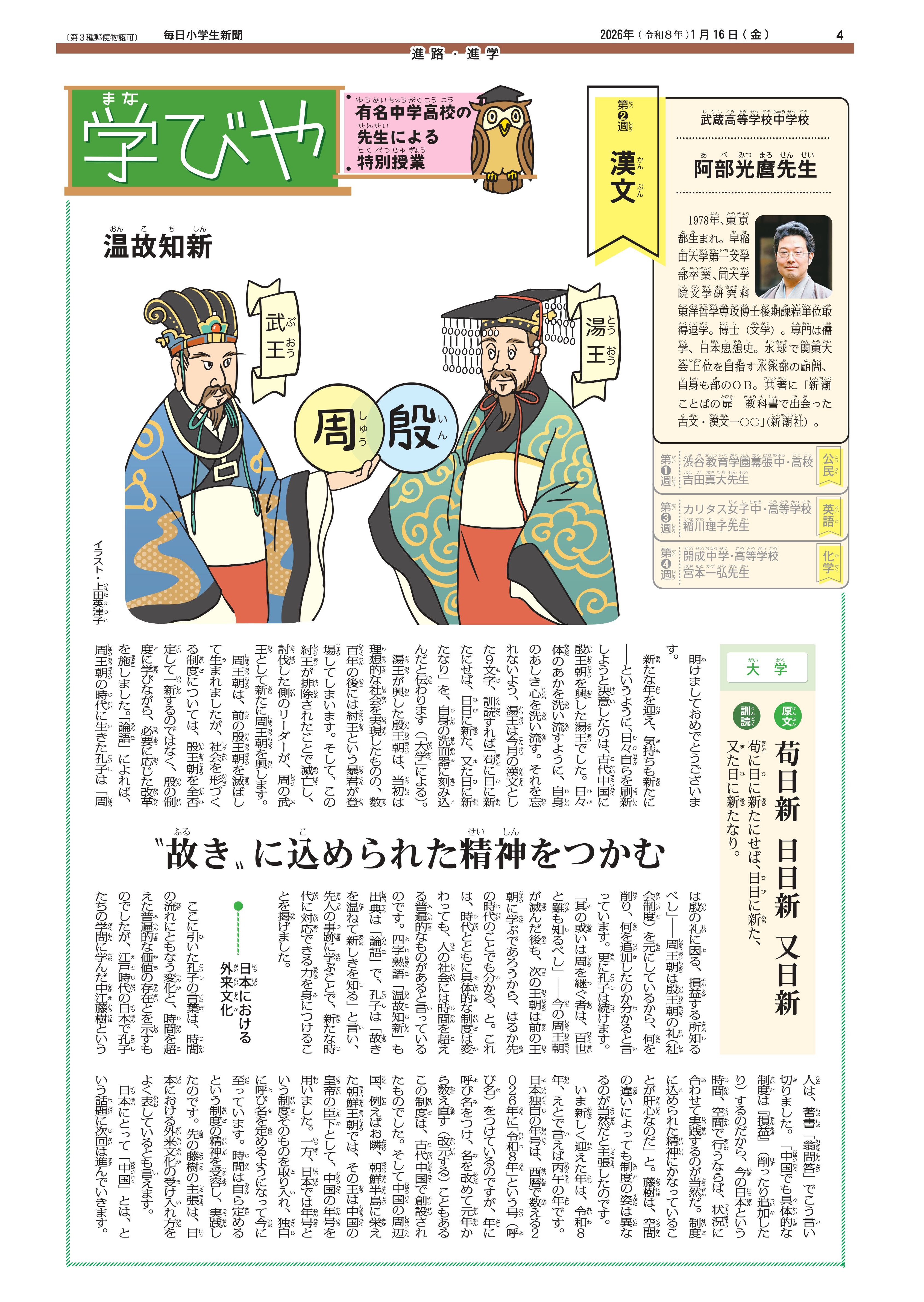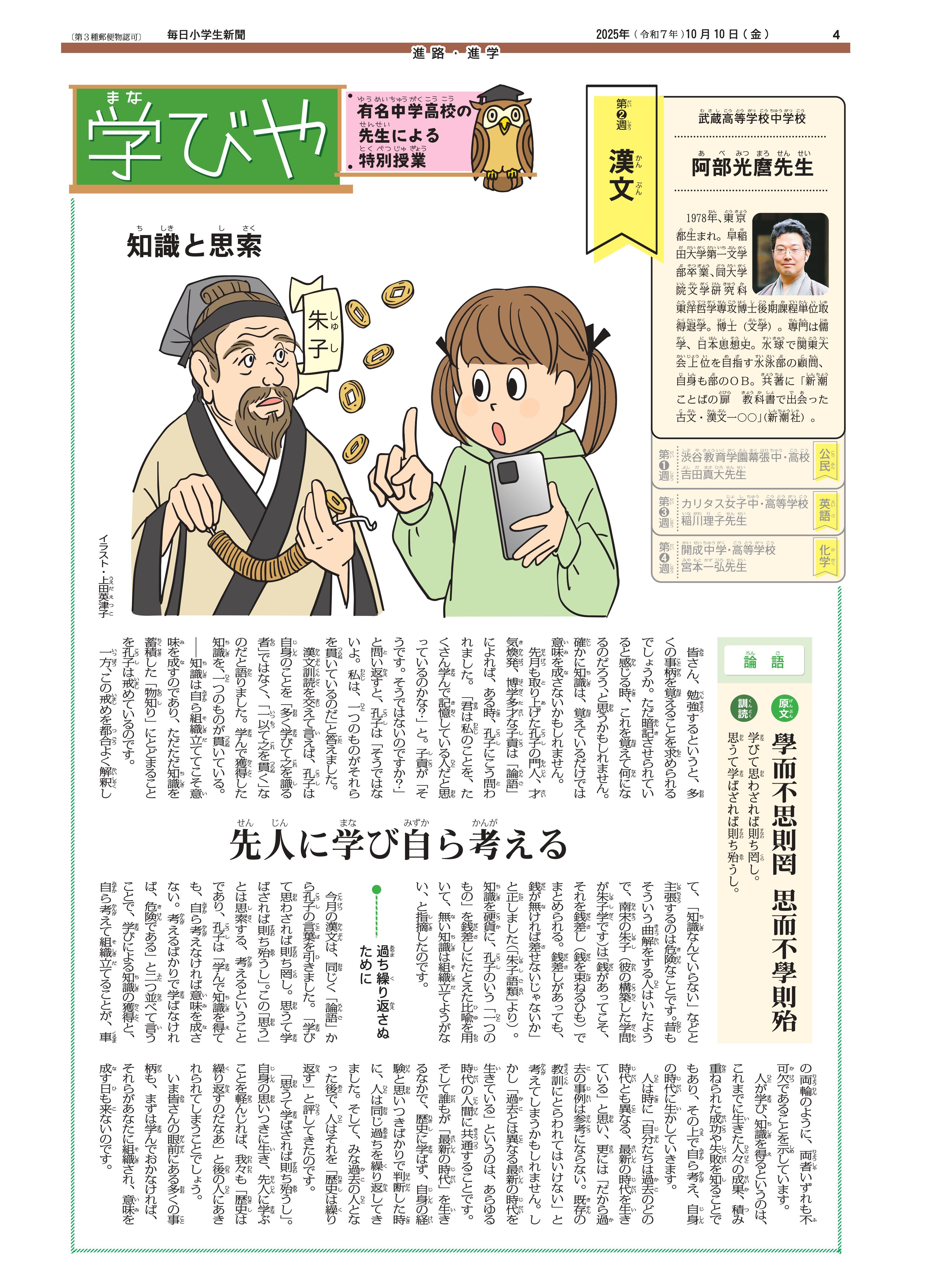 国語科 阿部光麿 教諭の連載が、毎日小学生新聞の「学びや」欄にて、始まりました。